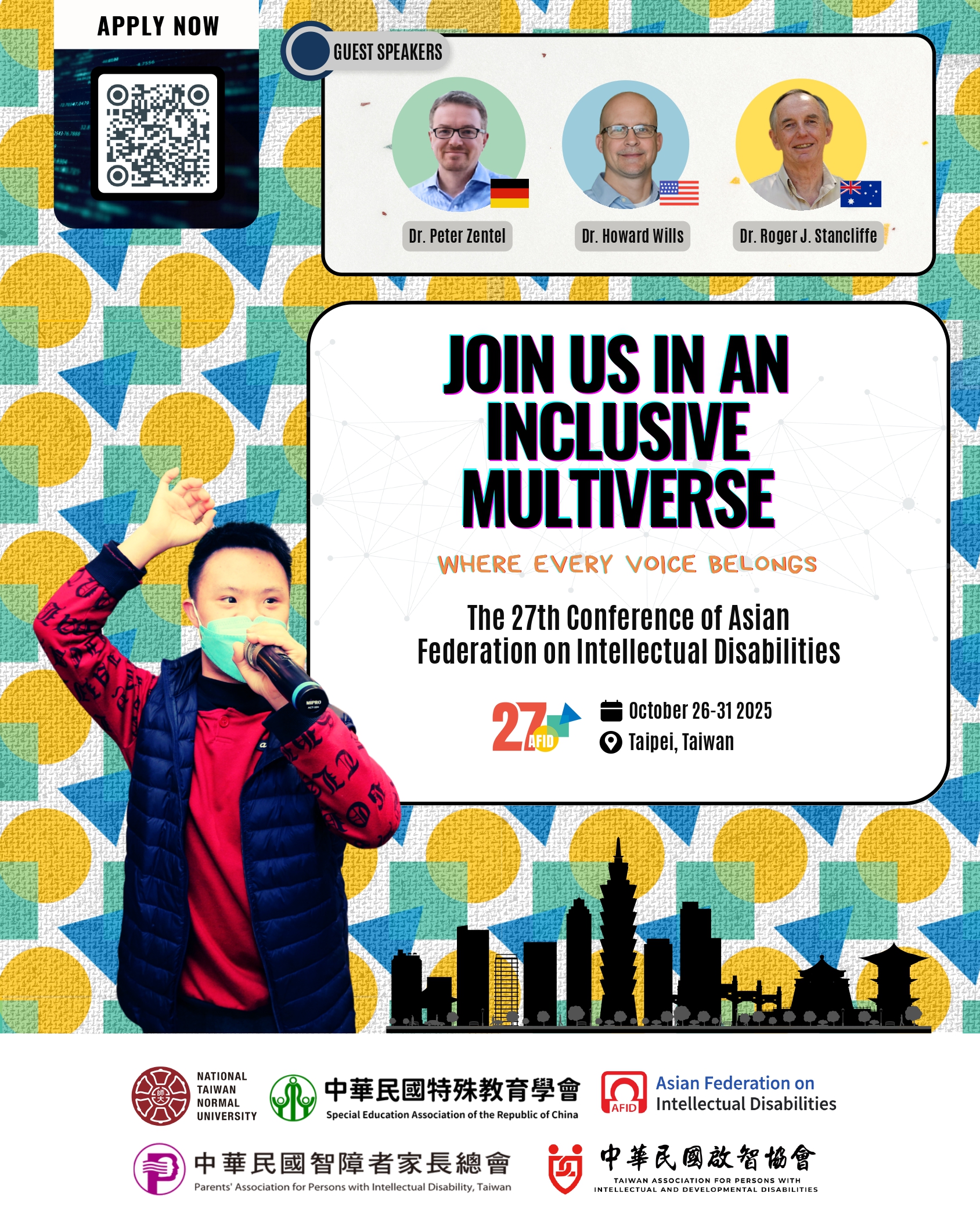 主旨: | 函轉「第27屆亞洲智能障礙聯盟大會」訂於114年10月26日至10月31日舉行,請轉知所屬教師及特教相關人員參加,請查照。 |